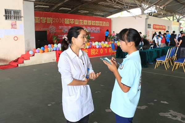 2015年11月28日早上9点在风雨球场,我校举行了由海南省人力资源开发局和必赢官网主办,海南省人力资源开发市场和必赢官网人文与传播学院承办的必赢官网2016届毕业生秋季校园双选会。我院党总支副书记傅萍、团委副书记杨嘉琳、辅导老师石玲老师也出席了双选会,及时与招聘方沟通,给学生答疑。