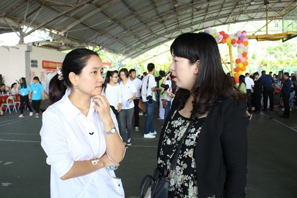 傅萍书记与杨嘉琳老师细心讨论招聘大会