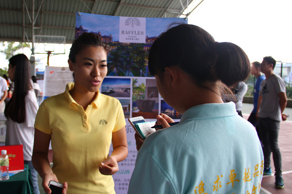 就她自己的工作经验而言,她觉得学好英语是非常重要的。因为她自己在莱佛士工作,管理层几乎都是外国人,所以要学好英语,才能更好的和他们沟通,才能更好的做好自己的工作。当然,如果英语没学好也不是代表自己找不到工作,但是就酒店工作而言,一般英语不好的只有做一些基础的岗位,如果想要获得一个好的岗位,英语是非常重要的。除此之外要具备好的服务意识,性格也要开朗,自己一定要清楚怎么去服务别人。当然在服务的时候你也能去学习,但是上升空间比较慢。还有实践也是很重要的。在此她提出希望我校的学生能好好地学习英语,这能让我们在应聘和就业的时候更加容易一点。