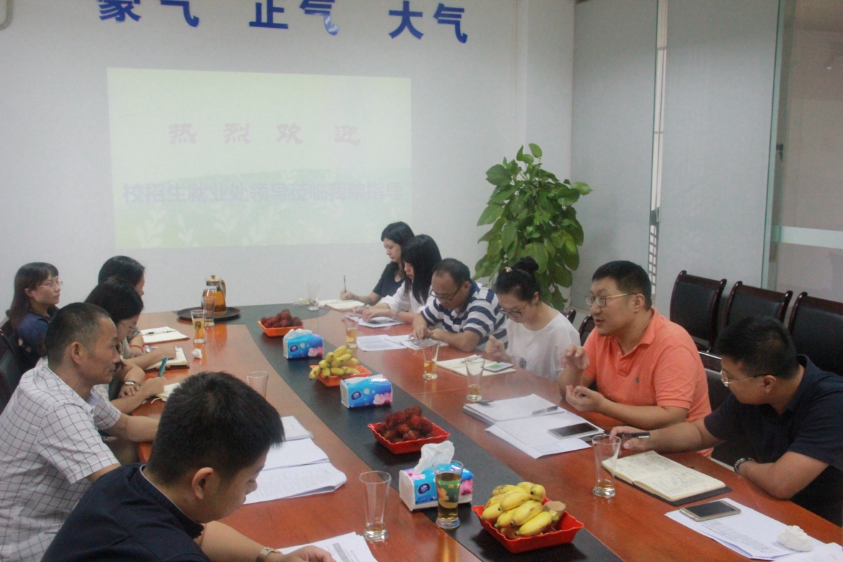 方艺华处长认真听取了我院就业工作的汇报,详细咨询了每项工作的开展进度及困难,要求我院进一步保证招生质量,促进就业工作全员化、全程化,持续提高毕业生就业指导服务水平,明确本学期工作重点,明确就业工作流程。针对我院需要注意的就业工作事项和宣传工作提出具体要求,同时与我院领导及老师进行沟通了解,并计划进一步结合实际,大胆创新,努力开创我院毕业生就业指导和服务工作的新局面。
