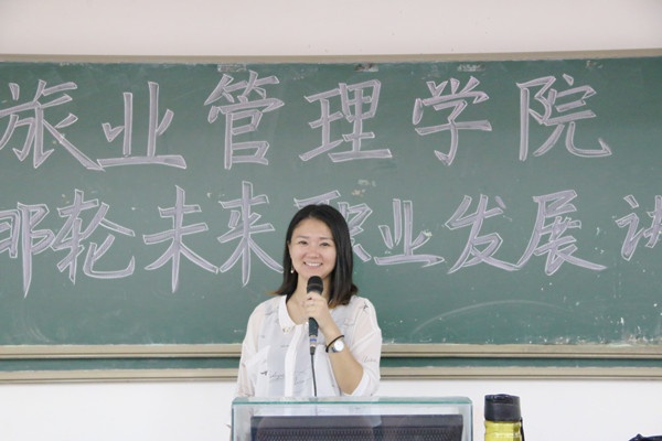 10月24号下午两点,我院邮轮专业主任王秋娜老师于书知楼1208教室为邮轮1401班准毕业生们举行了未来职业发展讲座。