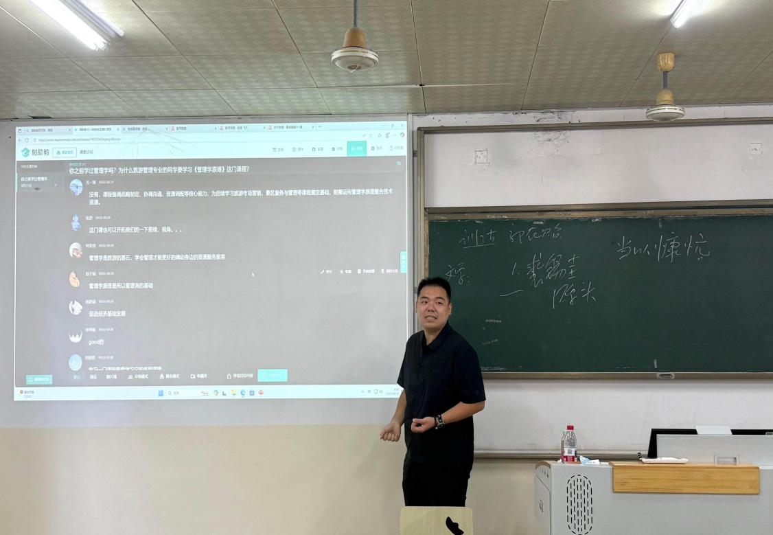 周旗教授在《旅游研究方法与学术写作》课堂上,系统讲解了学术研究与论文写作的基本模块,通过案例教学与实操训练相结合,着力提升学生的研究与表达能力;李明屿老师讲授的《会展概论》生动明晰,为学生奠定坚实的专业基础;张志辉老师结合现代技术手段开展《旅游地理信息系统》教学,增强课堂互动性与应用性;巩慧琴老师的《财务管理》课程逻辑清晰、案例丰富,引导学生建立系统思维;辛明涛老师在《管理学原理》教学中注重理论联系实际,课堂氛围热烈,学生参与度高。