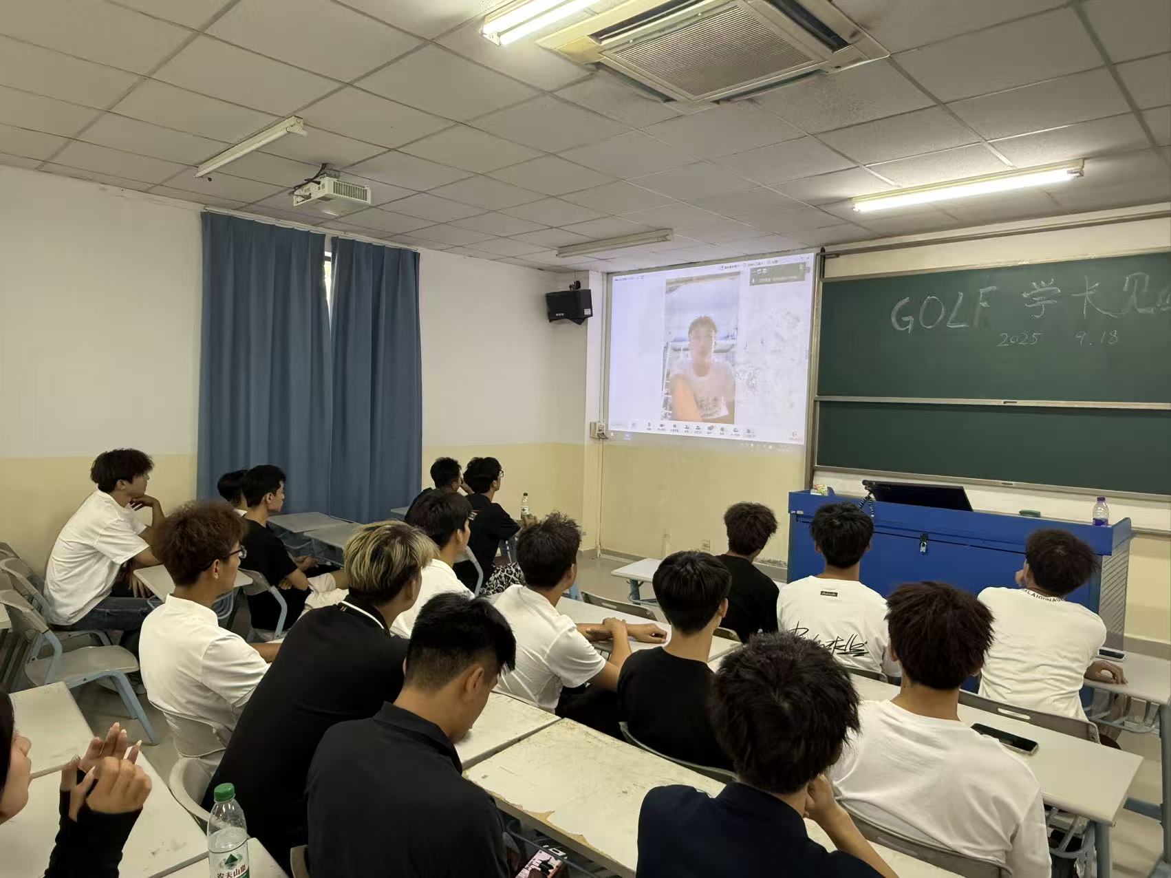 与会校友包括:2025年刚毕业、以优异成绩考入北京师范大学运动训练专业研究生的高尔夫21级付旭森;就职于海口观澜湖球会、负责球会日常运营管理与客户服务协调工作的21级巡场专员赵鸿鹄;2024年毕业、跨专业考入东北石油大学研究生的20级吕科奇;第二任校队队长、凭借扎实的专业功底与教学实践经验已培养青少年学员30余人的20级高尔夫教练林辰亮;2023年毕业、将高尔夫运动融入小学体育课程体系的小学体育教师刘真言;2023年毕业、现任成都科技学院体育教学部讲师并主讲《高尔夫运动概论》等专业课程的19级余若恒;以及2023年毕业、专注于高尔夫球杆定制与调试技术的鲲钛高尔夫球工坊装备师马乐强。各位校友结合自身职业选择与成长轨迹,详细介绍了毕业后的发展历程、行业认知及职业规划,并围绕学习方法、实习实践、职业转型等新生关注的话题分享了宝贵的经验与深刻感悟。