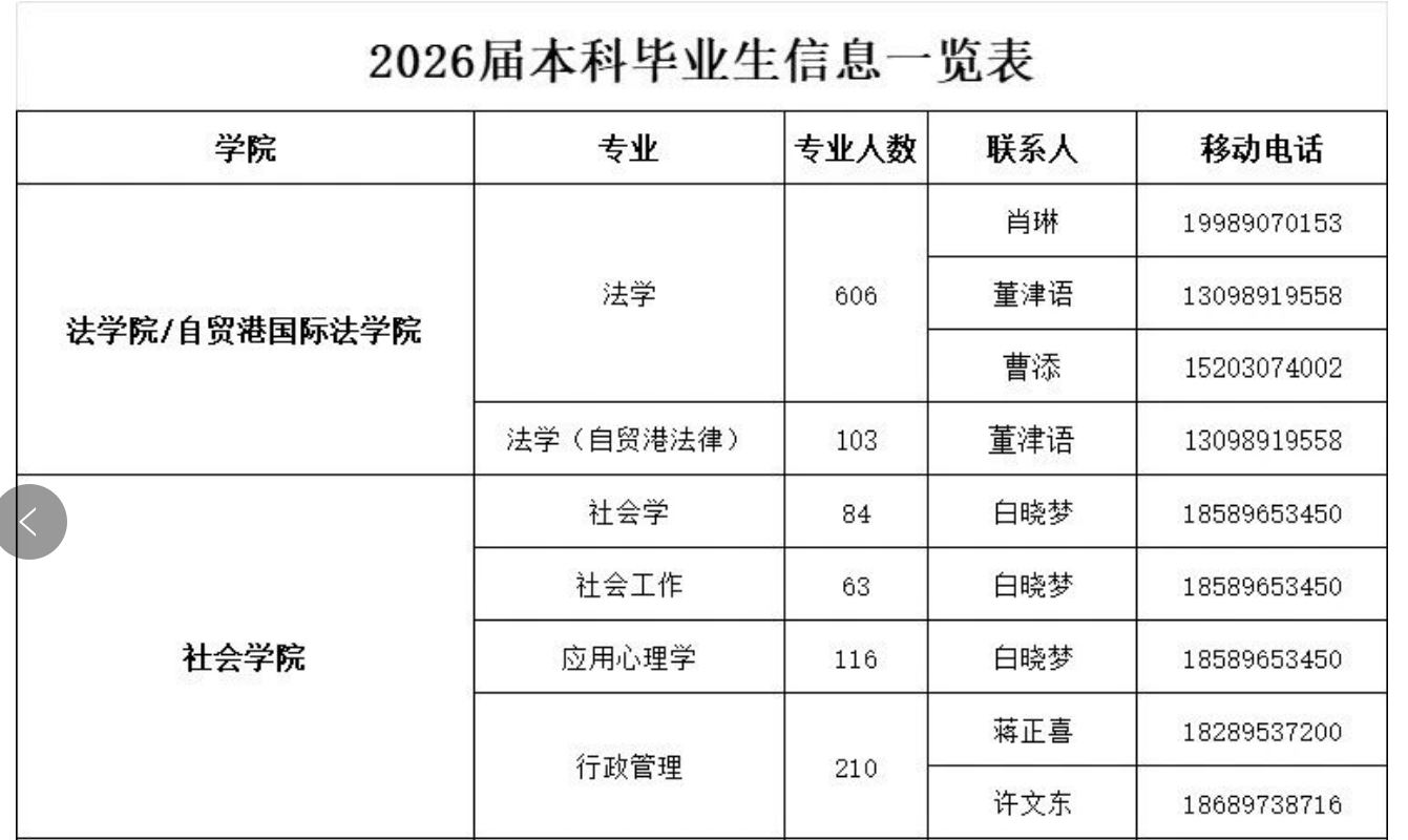 2026届毕业生信息一览表