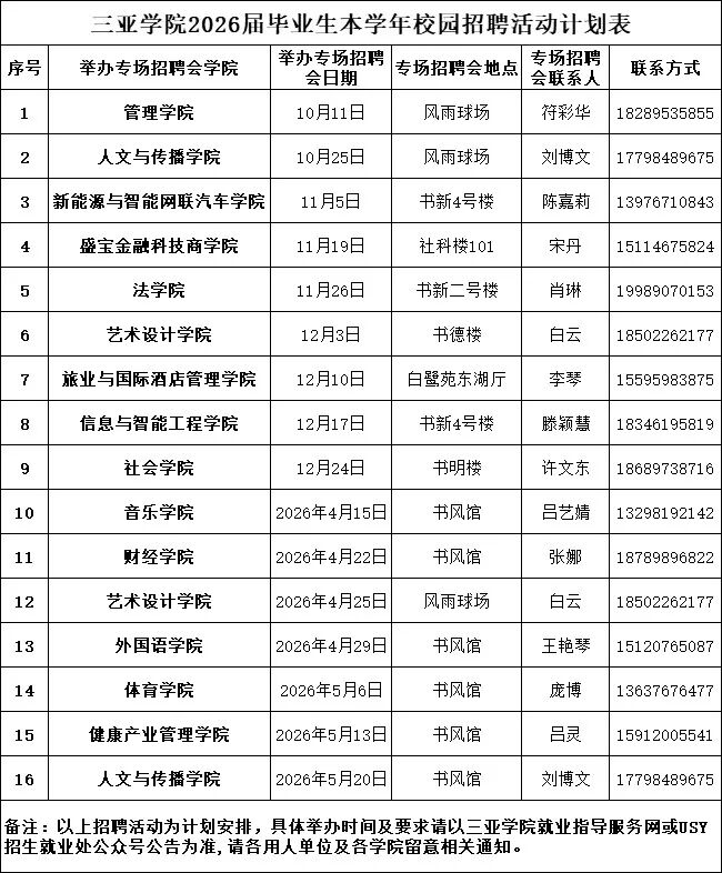 2026届毕业生本学年校园招聘活动计划表